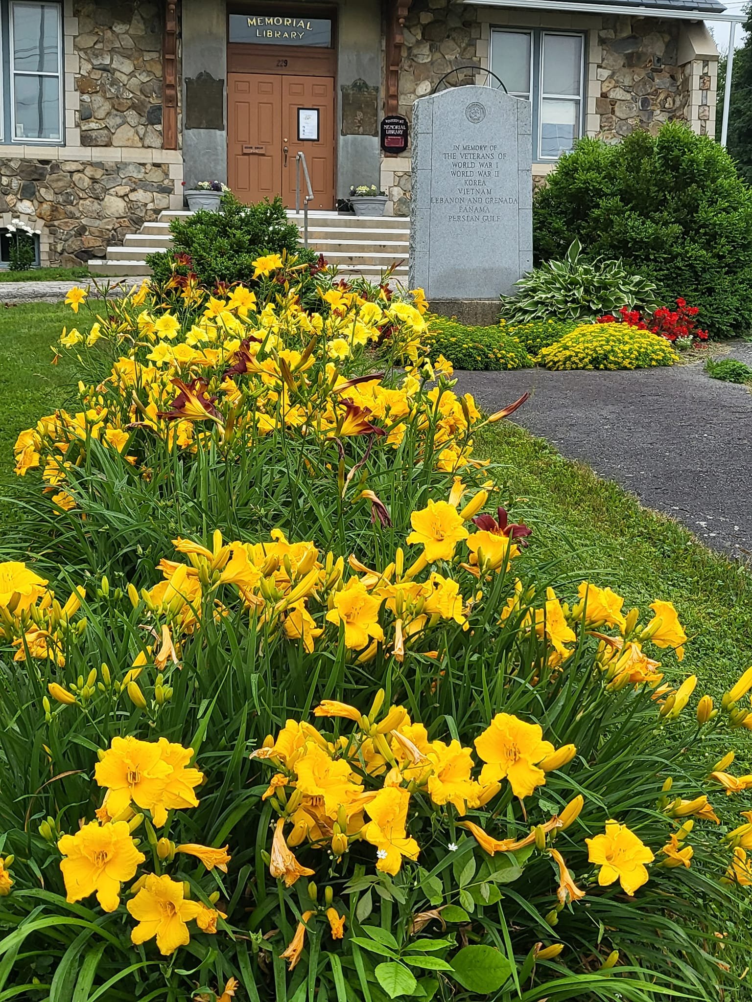 Every spring our Club purchases and plants annual flowers throughout the town of Winterport. We design, plant, and maintain the gardens at the library, Abbott Park, Freshies, and under the town message board. We also plant and maintain annual flower containers at the cemetery, library, Union Meeting House, and in our large Winterport Woman’s Club stone planter.